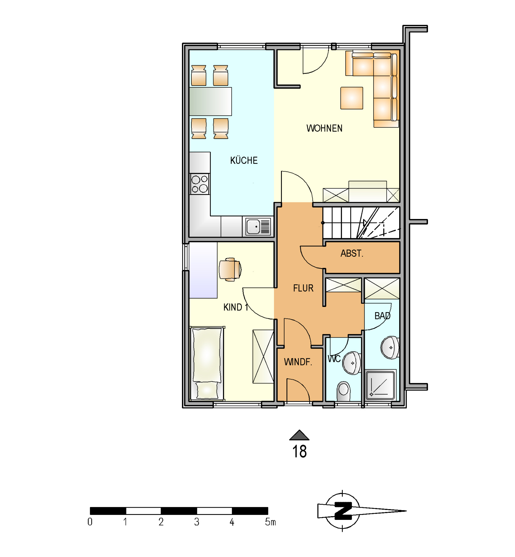 Dieses charmante Einfamilienhaus bietet auf drei Etagen ein durchdachtes Raumkonzept - ideal für Familien. Im Erdgeschoss befinden sich ein großzügiger Wohn- und Essbereich, eine separate Küche (im Grundriss als Kinderzimmer 1 gekennzeichnet), ein modernes Bad mit Dusche sowie ein separates WC. Vom Wohnzimmer gelangen Sie auf die schicke Terrasse. Ein praktischer Abstellraum und ein Hauswirtschaftsraum runden das Raumangebot auf dieser Ebene ab.