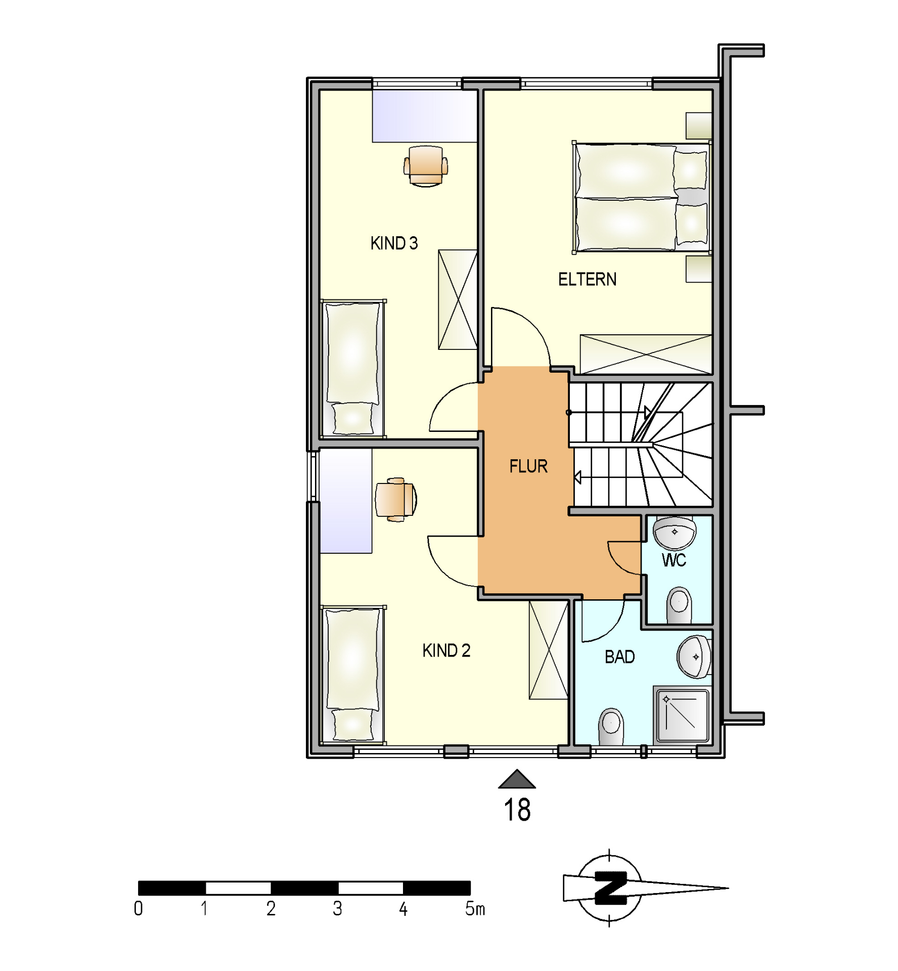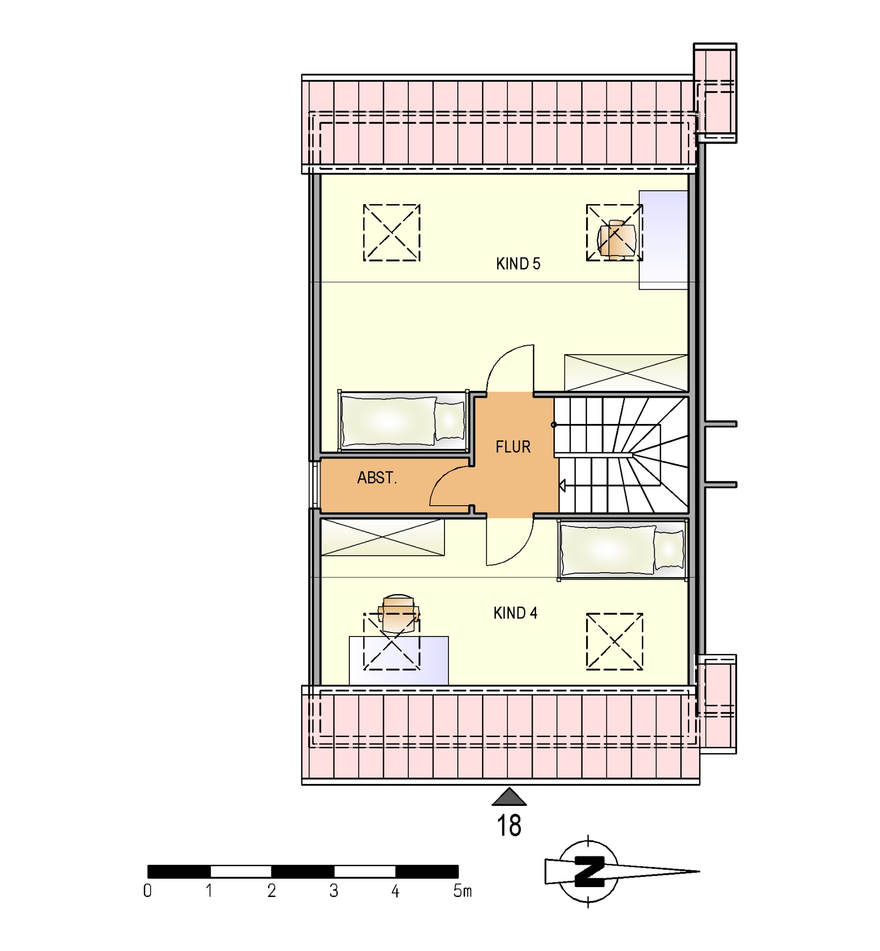 Das Dachgeschoss bietet zwei weitere gemütliche Kinderzimmer sowie einen zusätzlichen Abstellraum – ideal für größere Familien oder für die Nutzung als Gäste- bzw. Hobbybereich.