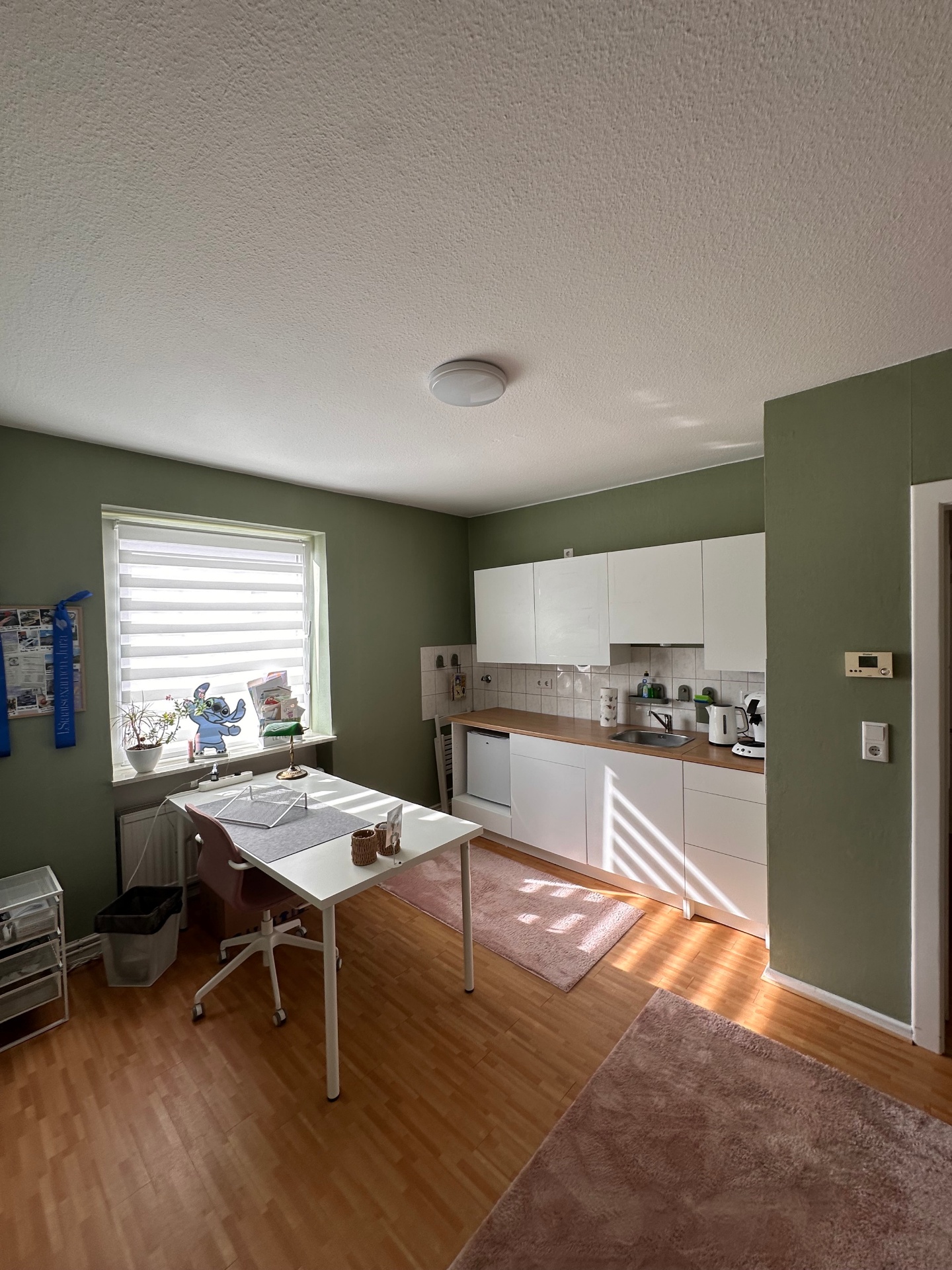 Durch die geräumige Küche gelangen Sie in das großzügige Wohn- und Schlafzimmer.