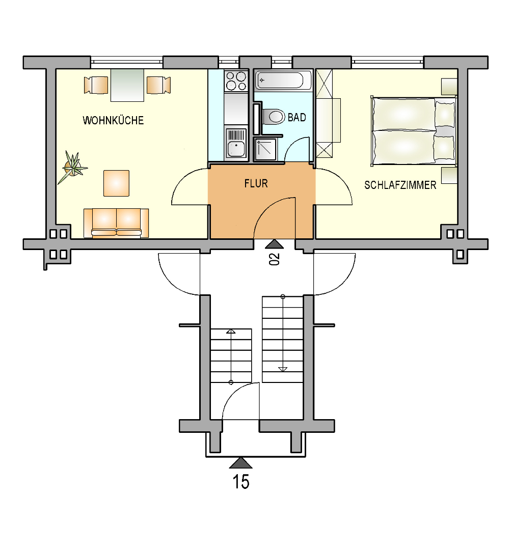 Die Wohnung bietet eine Wohnküche, ein Schlafzimmer, sowie ein Badezimmer mit Badewanne. Ein Keller wird Ihnen ebenfalls zur Verfügung gestellt.