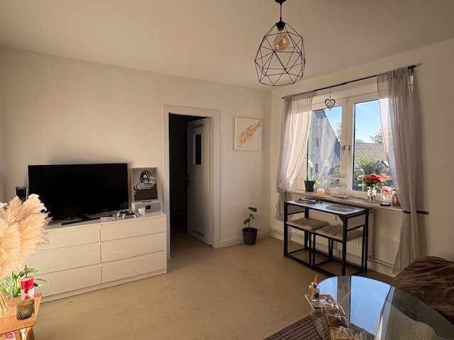 Beim Betreten gelangen Sie in einen Flur, von dem aus fast alle Räume direkt erreichbar sind. Das Badezimmer ist mit einer Badewanne ausgestattet und bietet Raum für entspannte Momente. Das Wohnzimmer erreichen Sie ebenfalls über den Flur; es dient zugleich als Durchgang zur Küche. Besonders hervorzuheben ist das geräumige Schlafzimmer, das ausreichend Platz für Ihre persönlichen Einrichtungswünsche bietet.