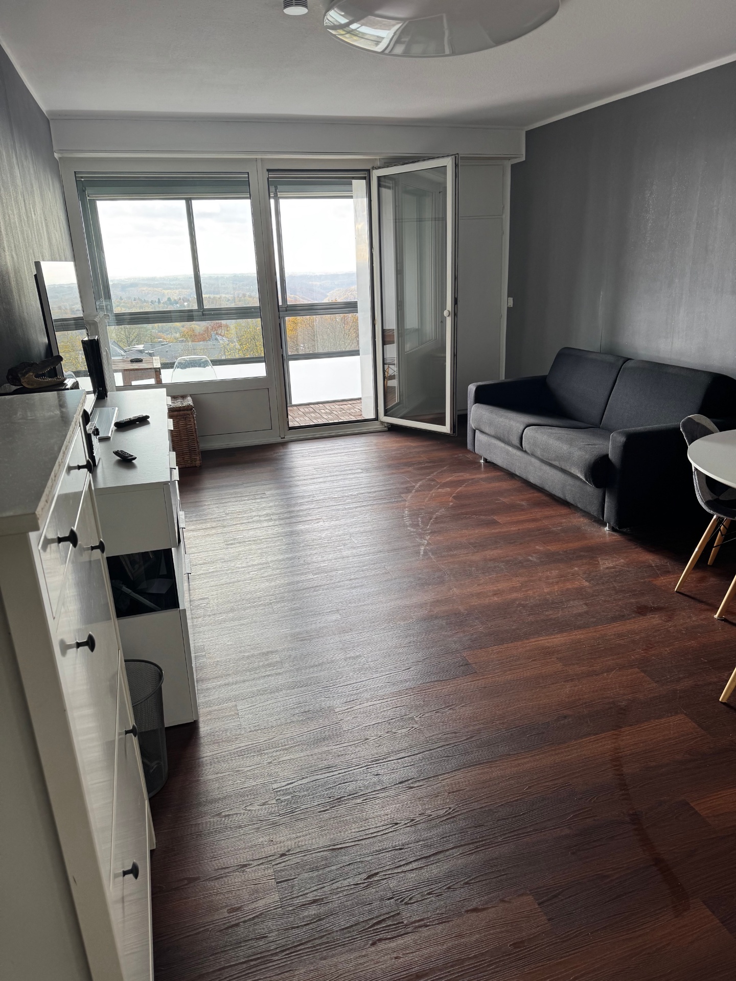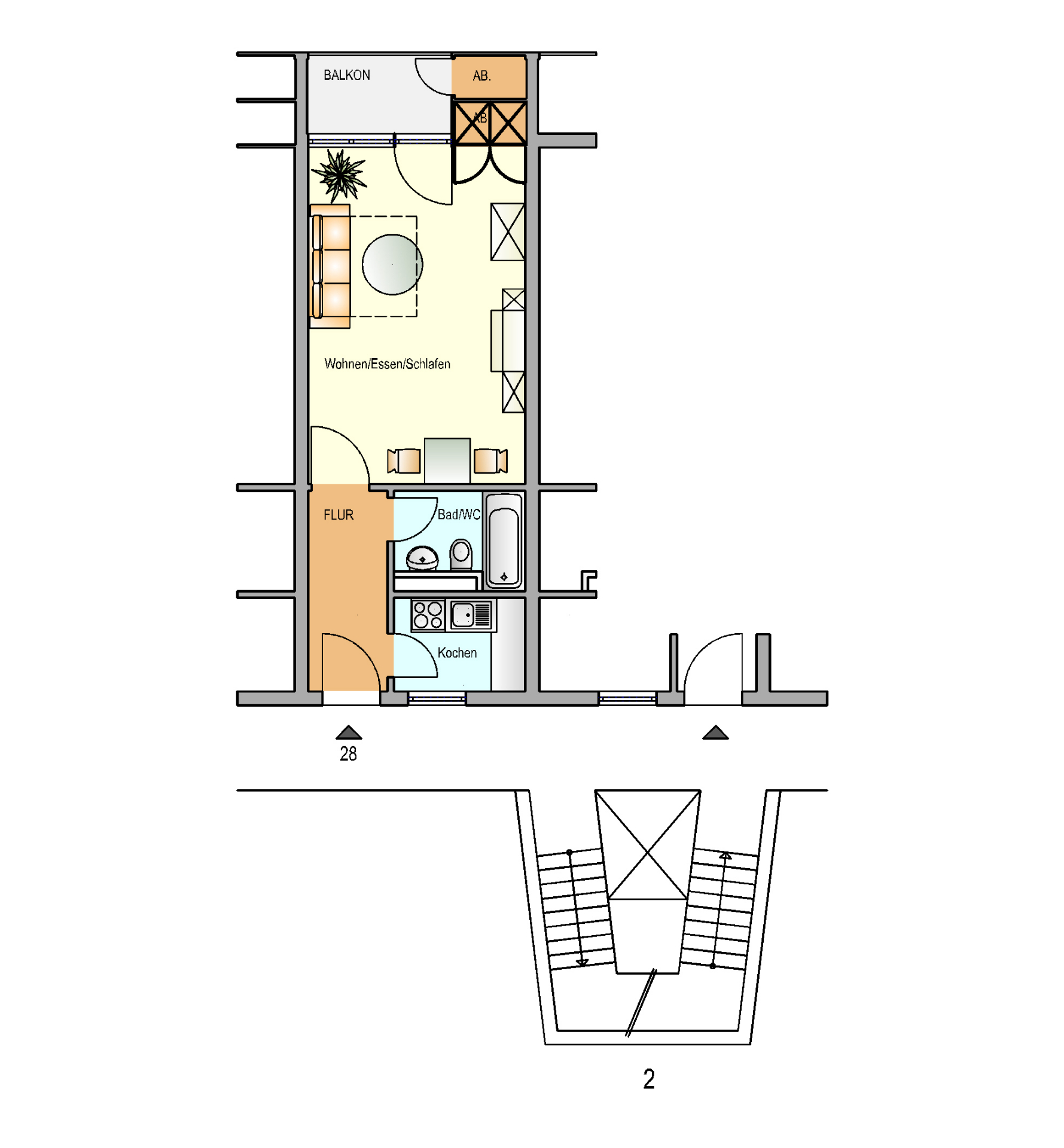 Über den Flur erreichen Sie die Küche, das Bad und den lichtdurchfluteten Wohn-Schlafraum. Die Wohnung verfügt über einen geschützten Balkon, auf dem bei klarer Sicht bis Düsseldorf geschaut werden kann.