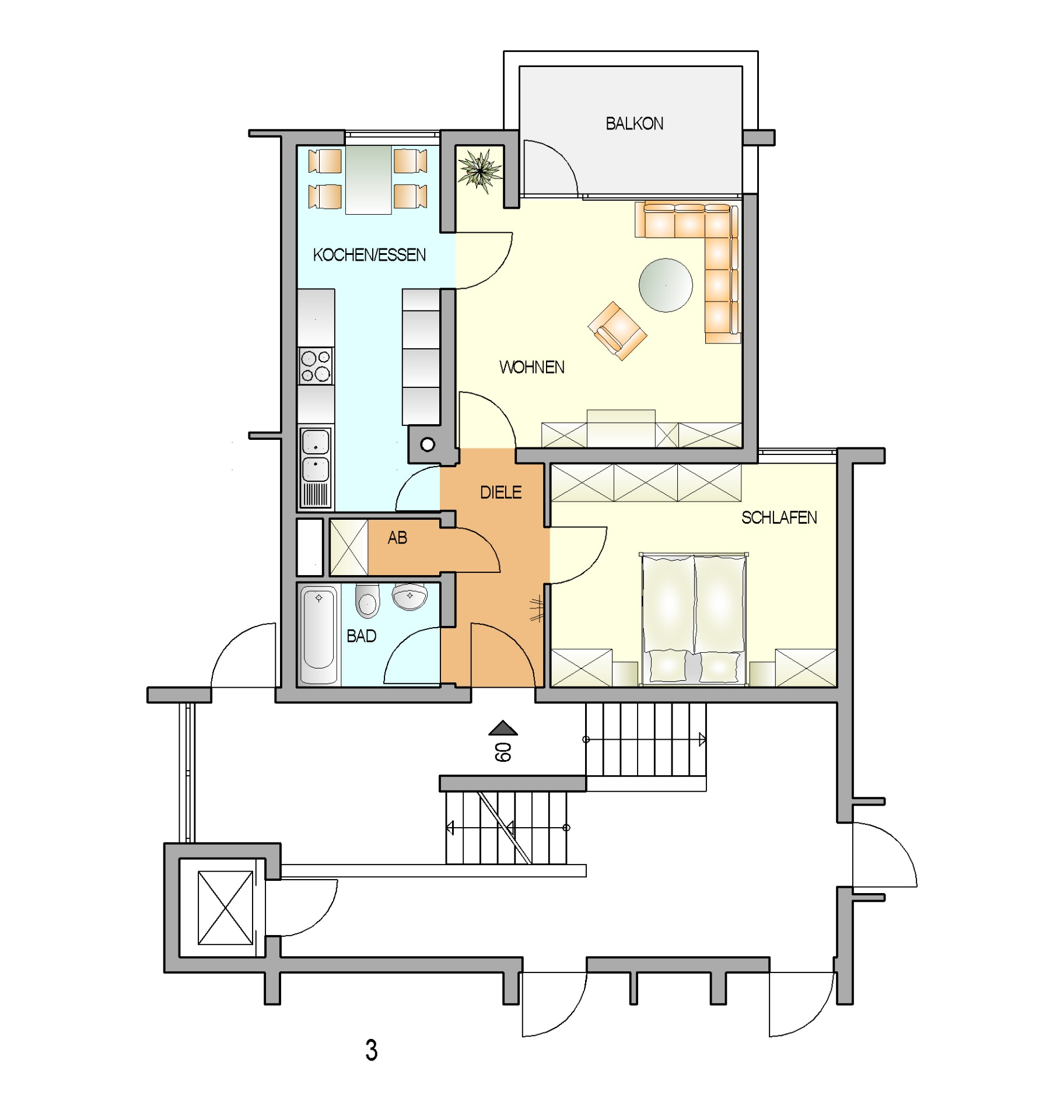 Diese tolle Wohnung befindet sich im fünften Obergeschoss und ist mit dem Aufzug erreichbar.