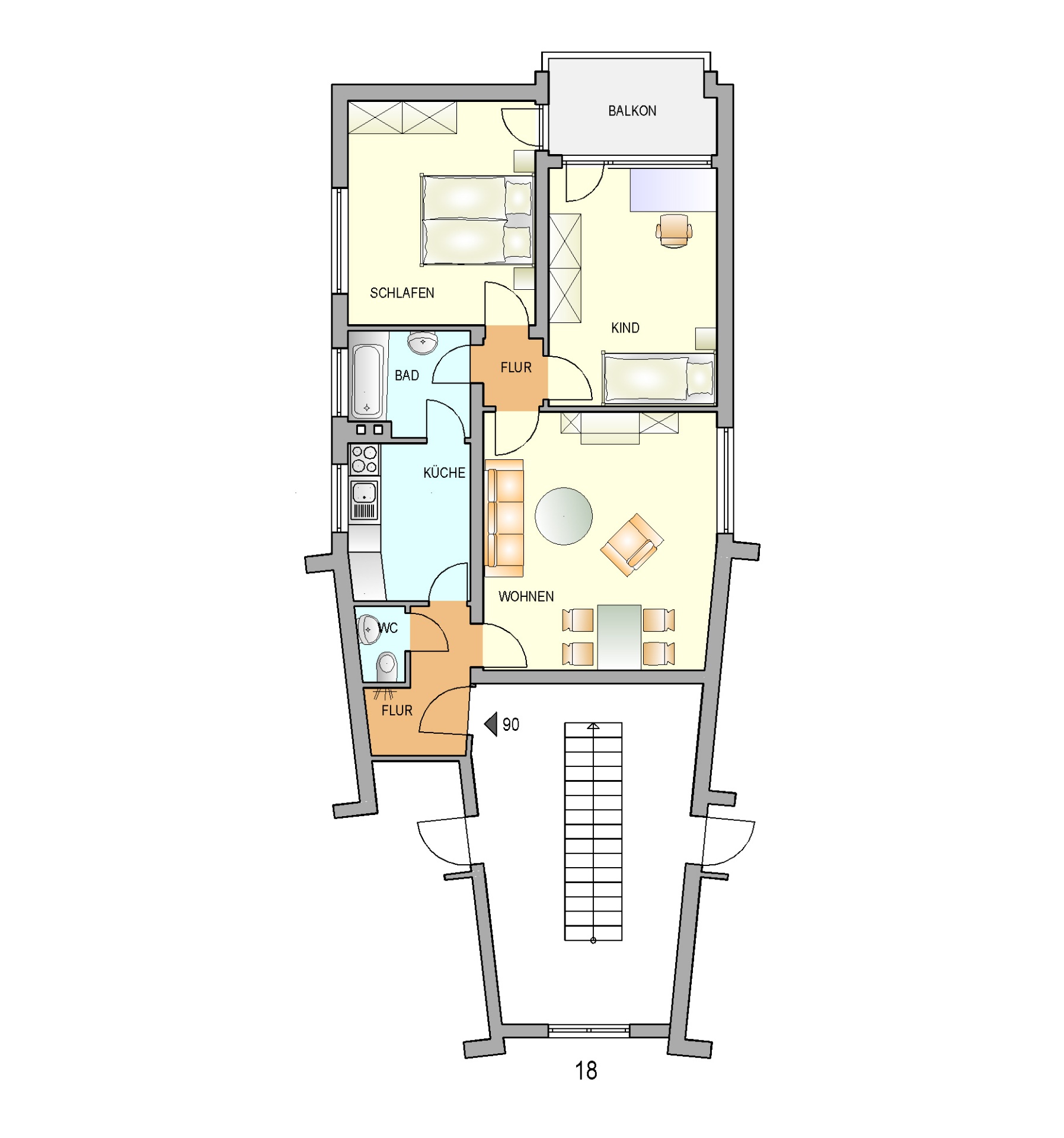 Sowohl das Schlafzimmer als auch das Kinderzimmer haben Zugang zu dem schönen Süd-Balkon. Ein Keller wird Ihnen zur Verfügung gestellt.