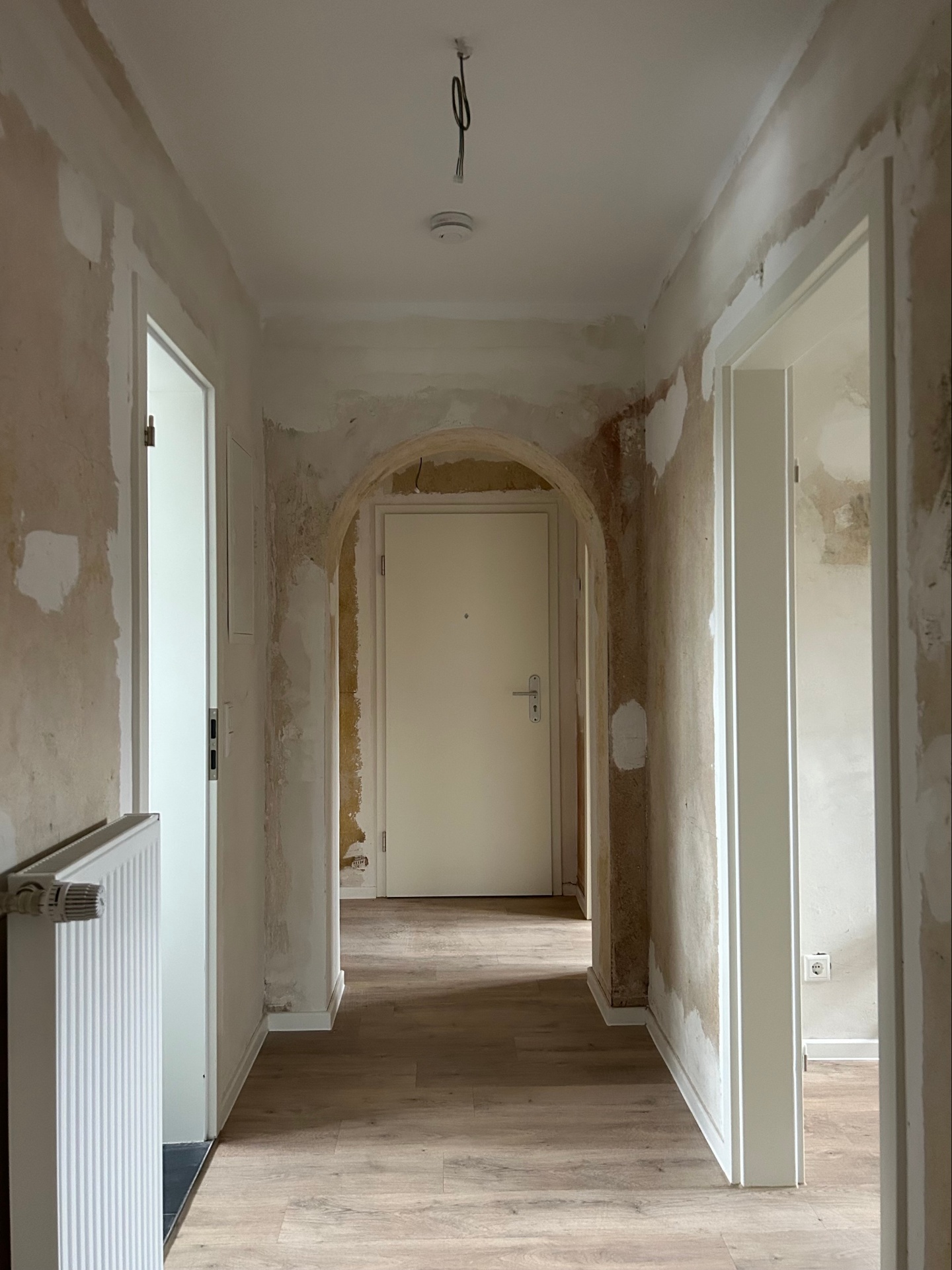 Vom Flur aus sind alle Räume bequem erreichbar, was die Wohnung besonders praktisch und funktional macht. Die Wohnung verfügt über ein geräumiges Wohnzimmer, eine Küche, ein gemütliches Schlafzimmer und ein frisch saniertes Badezimmer mit einer Badewanne.