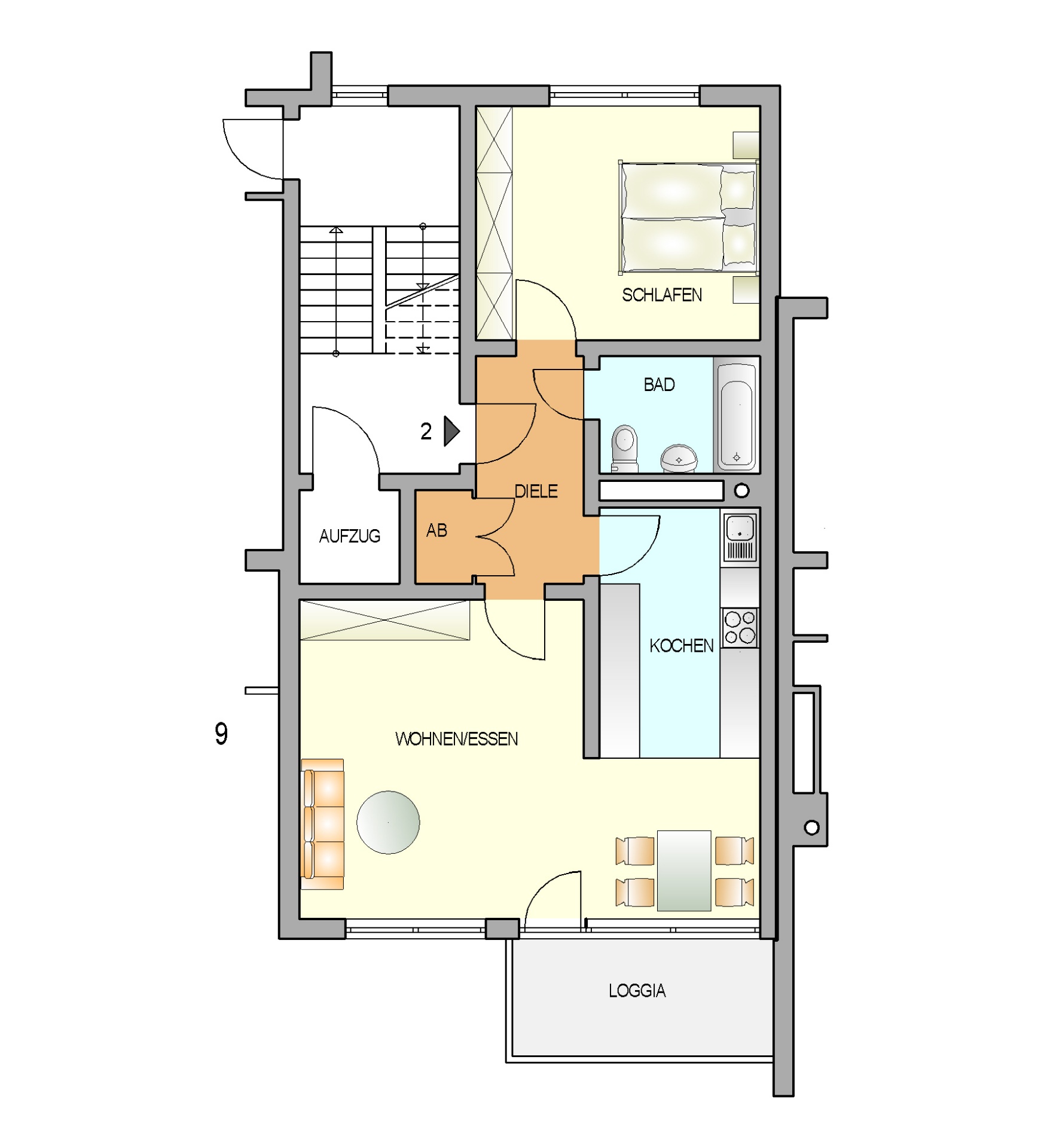 Diese ruhig aber dennoch zentral gelegene Wohnung befindet sich zwischen der Innenstadt und dem RS HBF. Öffentliche Verkehrsmittel sind daher schnell zu erreichen.